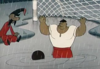 Более того, одну из игр (правда не с Францией, а в данном случае с Англией) герои мультфильма провели под проливным дождем!